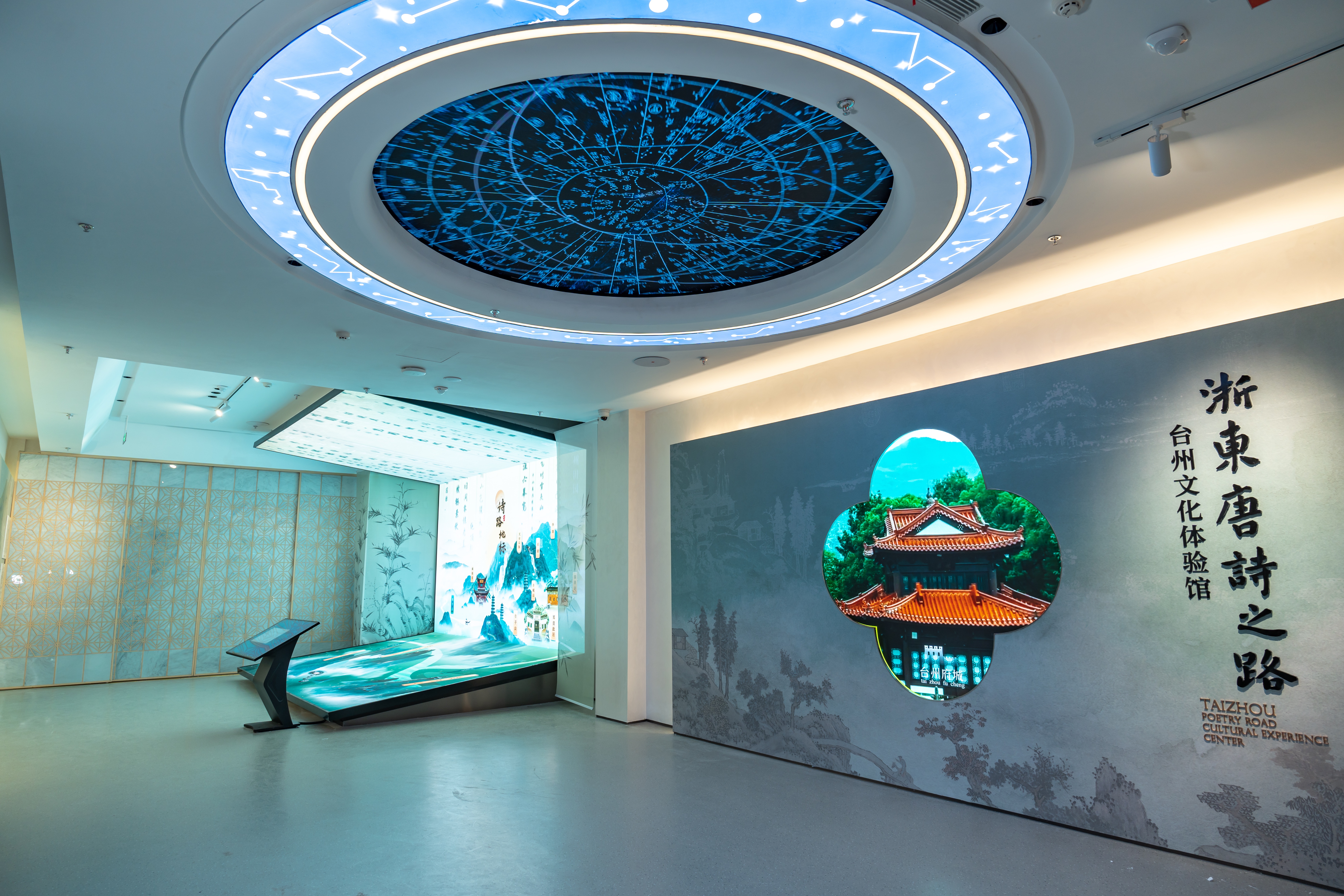 浙东唐诗之路·台州文化体验馆以浙东唐诗之路文旅大数据为支撑,围绕浙东唐诗之路尤其是台州段的人、地、诗、景、事,运用AIGC大模型、体感互动等数字技术,形成可听、可互动、可传播的多种数字展项,也是全国第一个市级博物馆中的数字诗路文化体验馆。